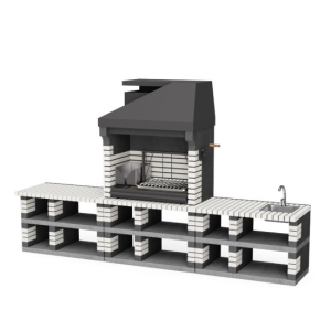 3. MOVELAR - Barbecue préfabriqué pour bois et charbon Modèle Pack 1 Pan America (Beige - 360 x 70 x 220 cm) REF: M00380